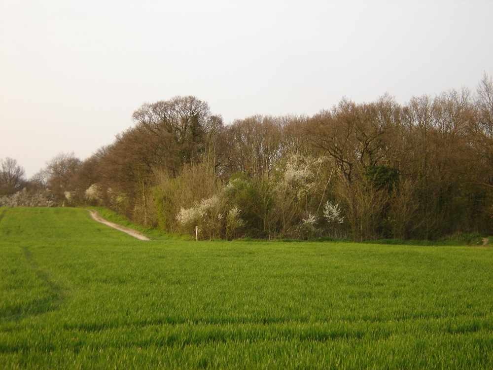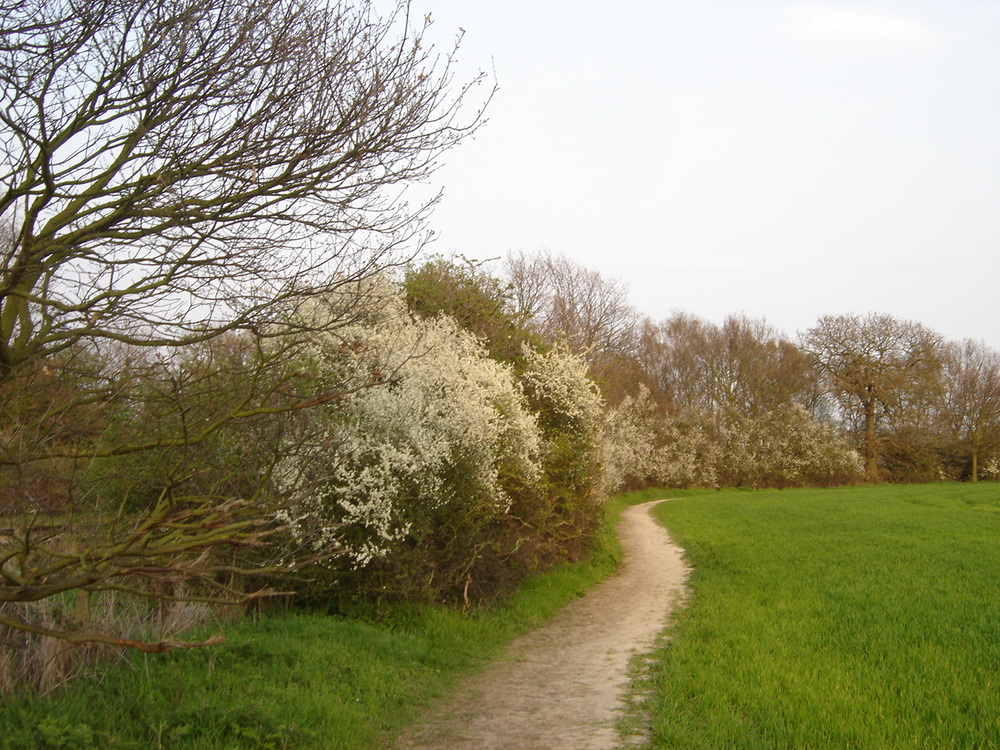 The last two evenings on my favourite walk the Spring flowers are really prominent. The wood anemones carpet the ancient hornbeam woods, and along the edge the May flowers are there in all their glory. The big trees have hardly made an effort to come into leaf, not even the adjacent hornbeam.